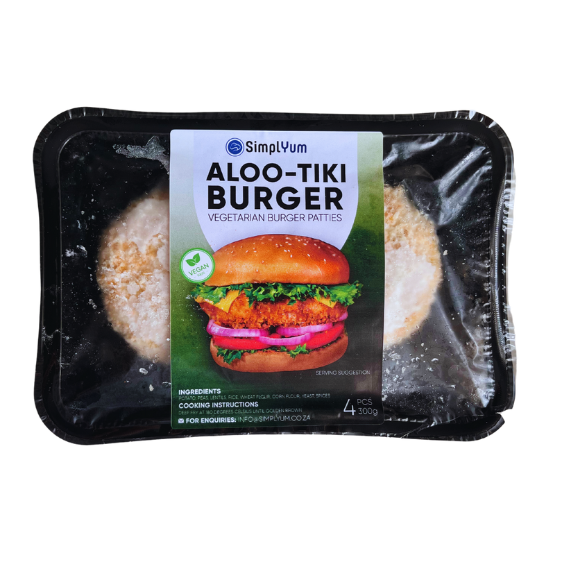 A vegan burger patty consisting of potato, lentils , peas and spices coated in breadcrumbs